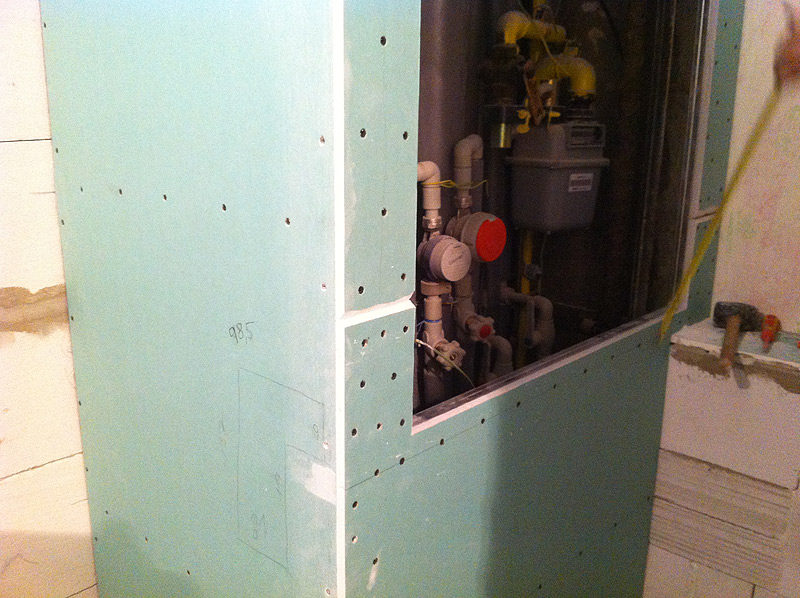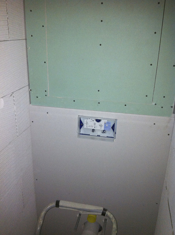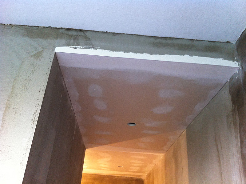 Sádrokarton je často používaný materiál na opláštění bytovch jader, vyrovnání stropu, ale i na celkové provedení příček.Je mnohem lehčí než klasické zdění, tudíž je náhradou tam, kde např. ze statických důvodů nelze použít přesné tvárnice ytong. Nevýhodou je jeho malá pevnost, a proto doporučujeme jeho používání pouze v krajních případech. To se ovšem netýká stropu, kde po následné montáži bodových světel vzniká luxusní a příjemný dojem. Použití sádrokartonu doporučujeme i pro zadní příčku ve WC u byových jader. Na přání provádíme i montáž obložitelných dvířek a následné obložení obkladem. Taková dvířka nejsou téměř vidět a dokonale splývají v prostoru.